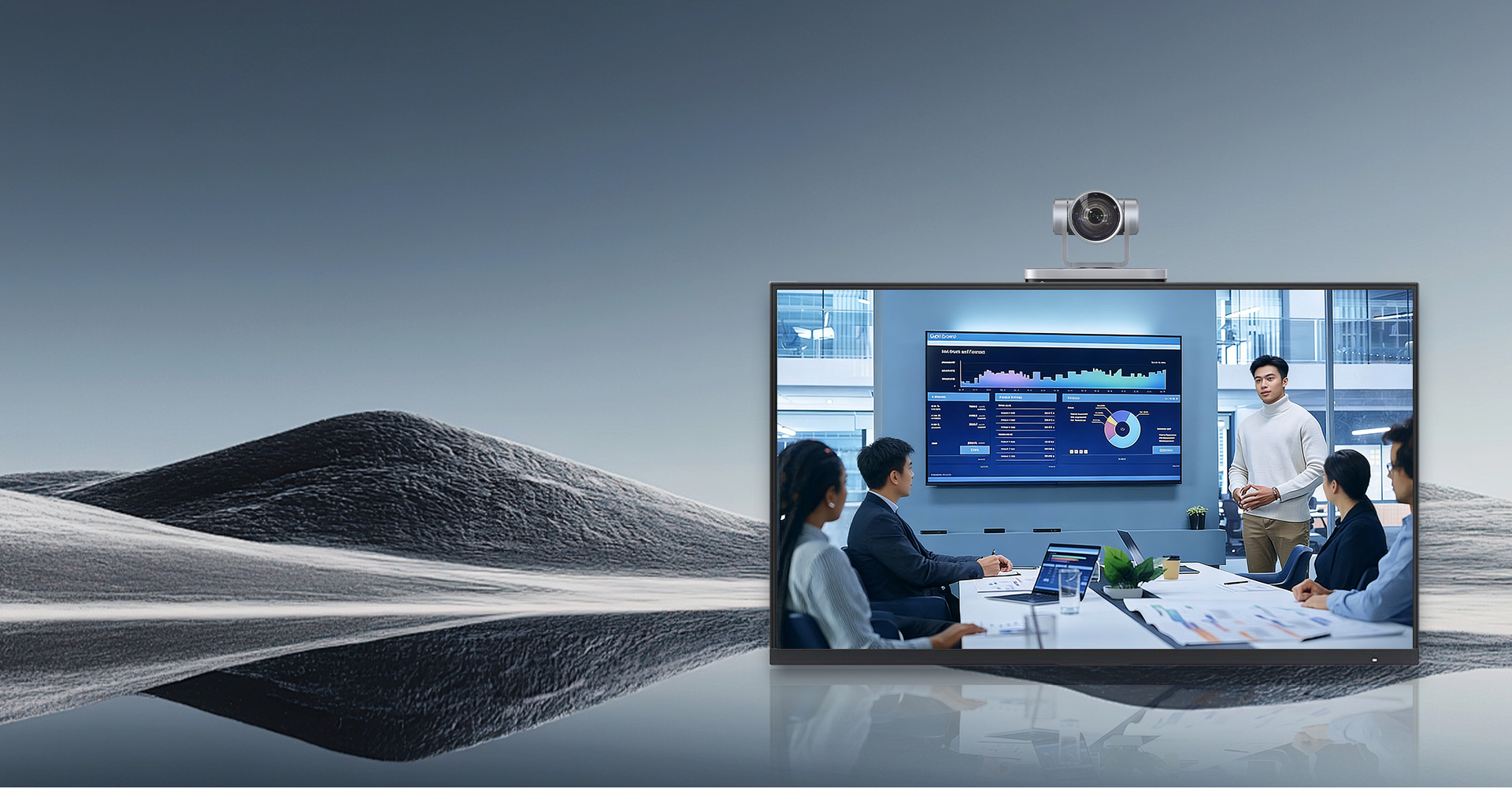 新一代高性能处理器+硬件编解码,支持双路4Kp60超高清视频与内容传输,清晰度较1080p30终端提升8倍,远端画面、会议文档细节清晰呈现。